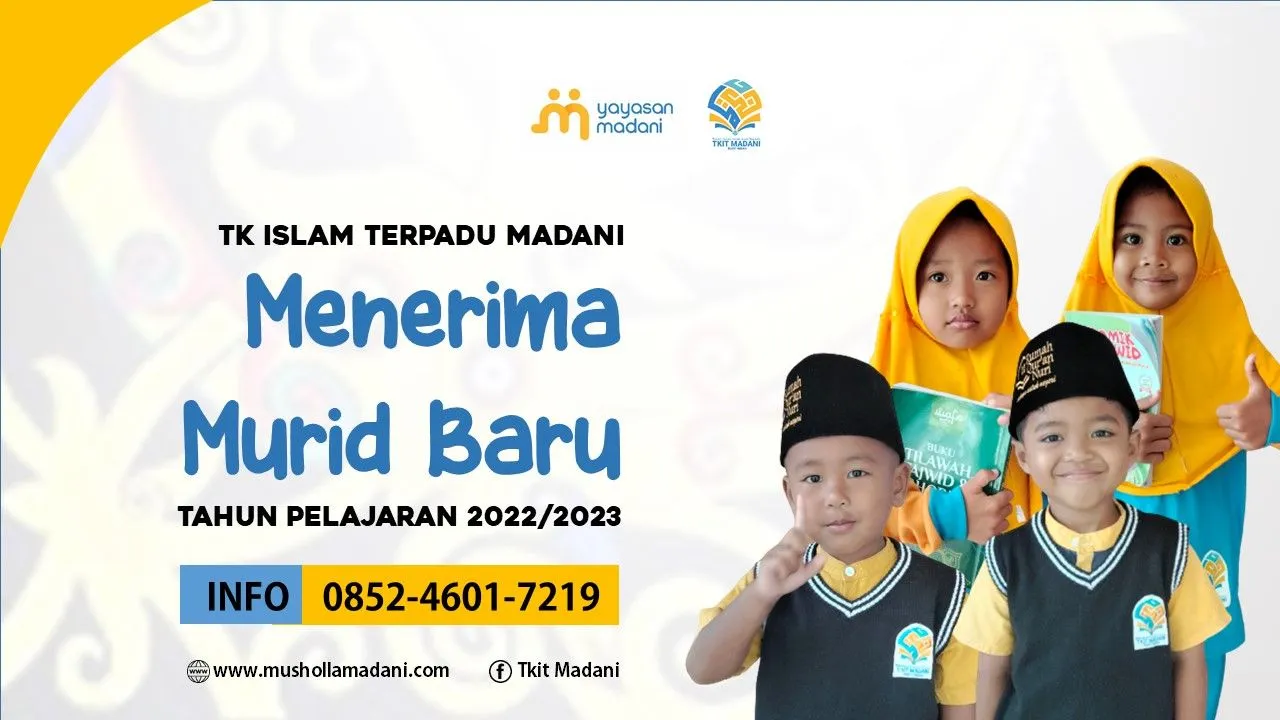 TK ISLAM TERPADU MADANI hadir untuk menjadi mitra bagi orangtua yang ingin memberikan pendampingan dan pendidikan terbaik bagi ananda di masa keemasannya.